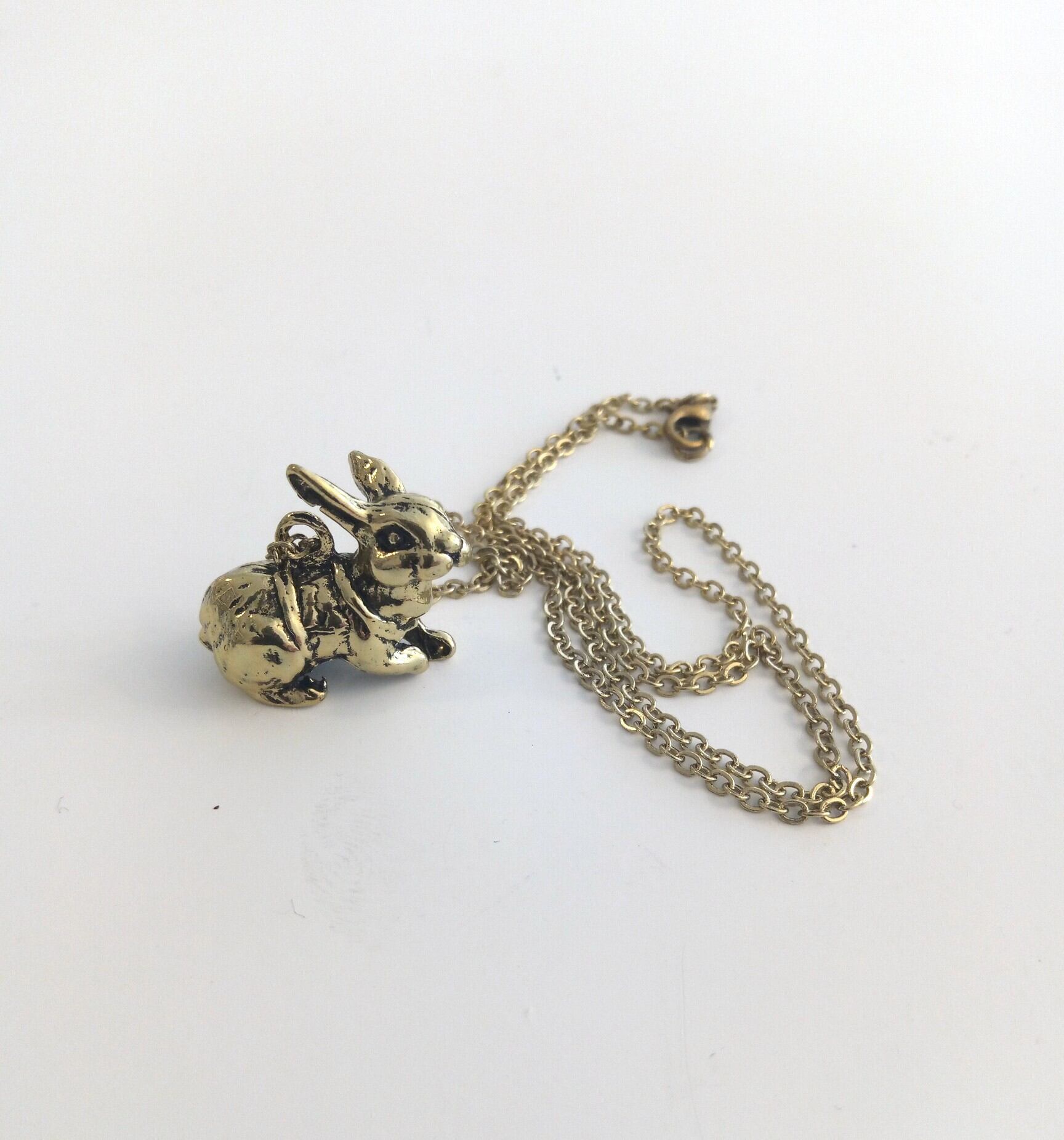 アンティーク調の、うさぎのチャームのが可愛らしいデザインです。