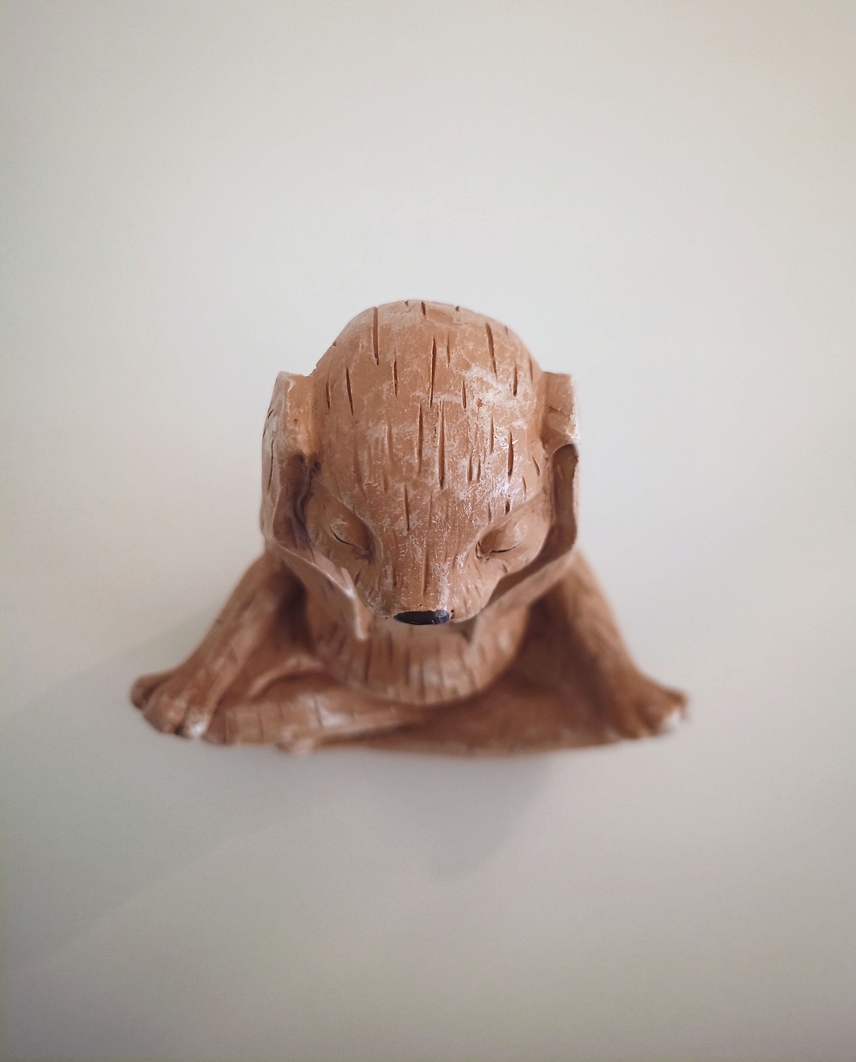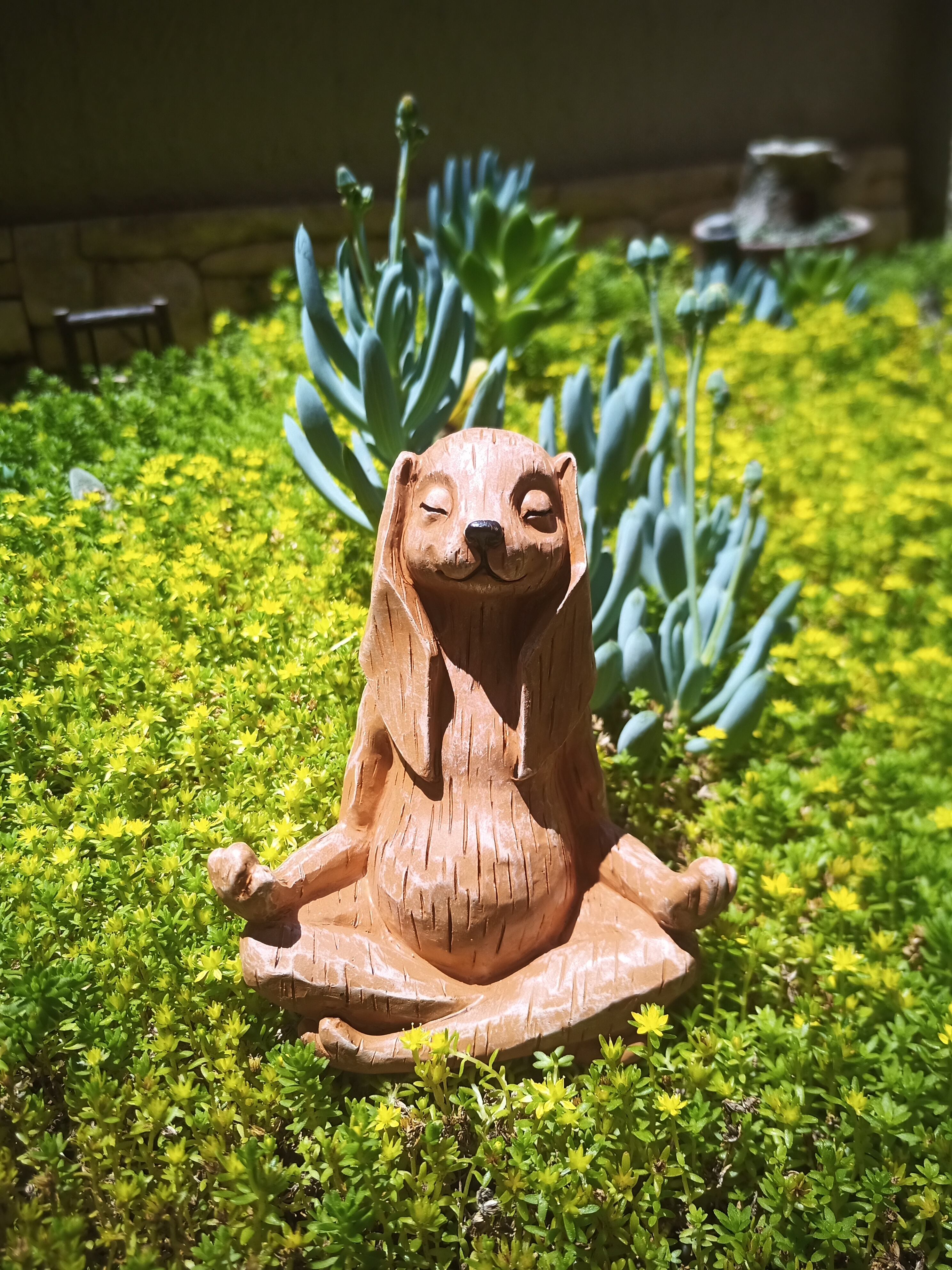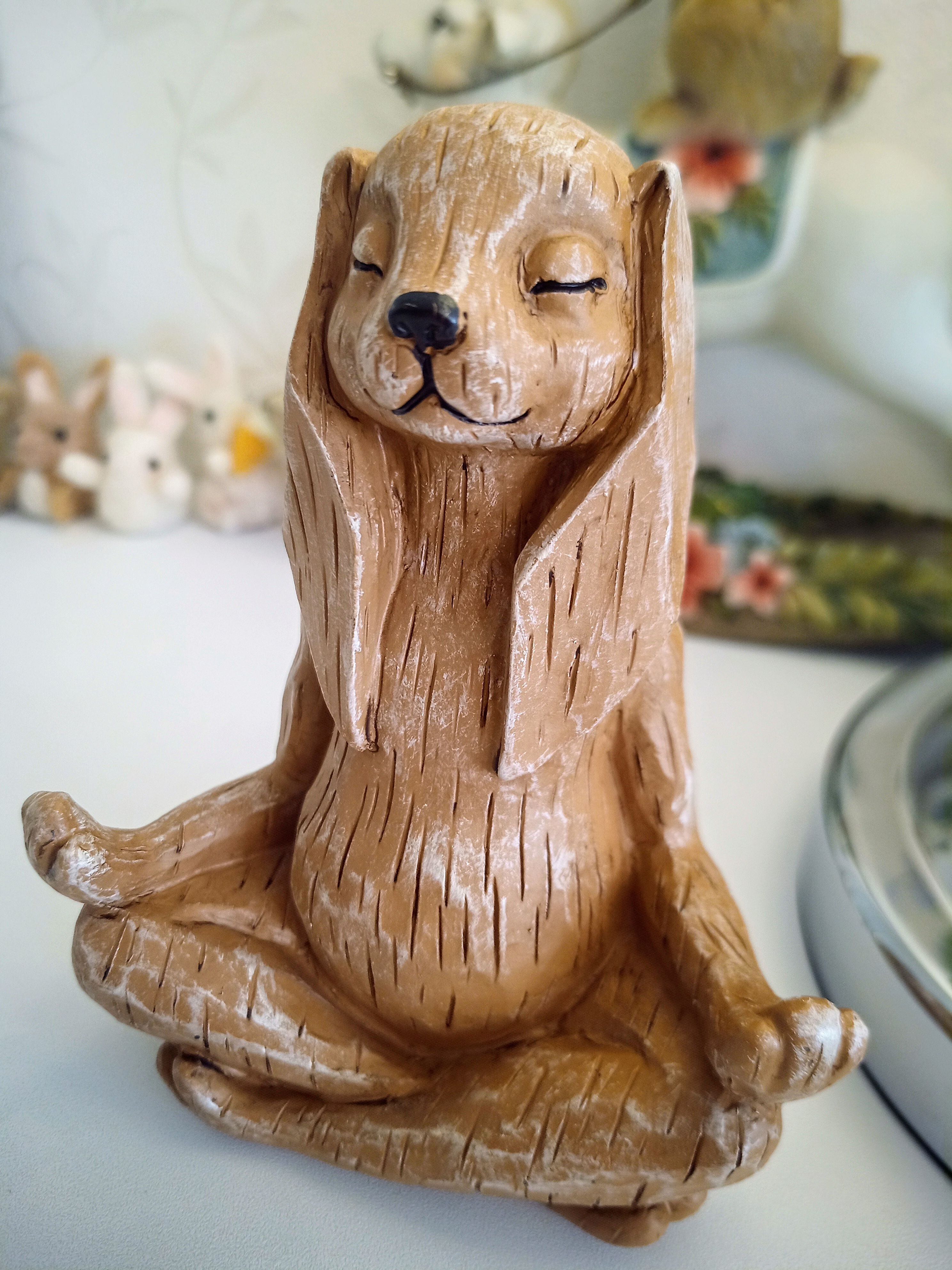 木彫りの彫刻のような造りで、うさぎの瞑想する姿に癒やされます。