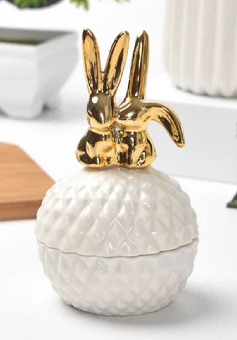 ゴールドのうさぎが可愛らしいアクセントの小物入れです。